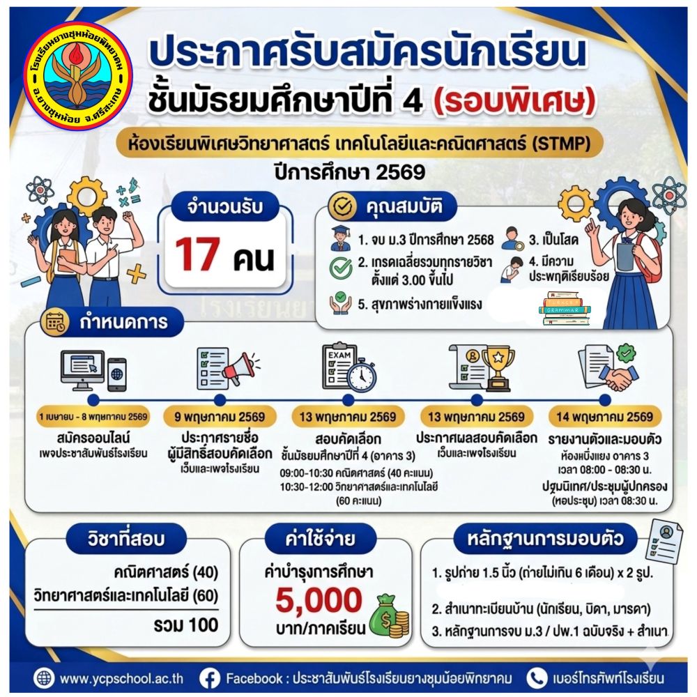 - การรับสมัครนักเรียนระดับชั้น ม.1 ม.4 ประจำปีการศึกษา 2568 ( 17 มี.ค. 68 )